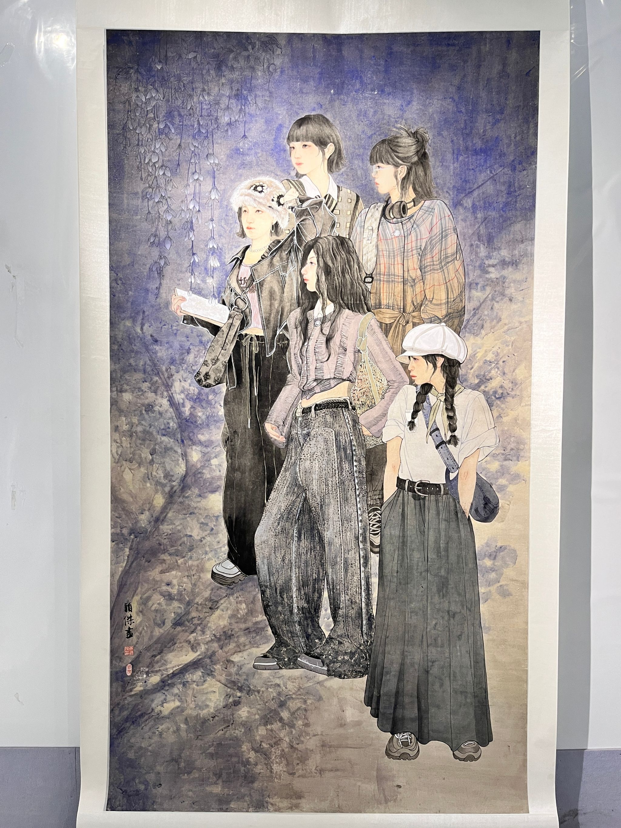 展览中最引人注目的无疑是“国画”部分,作品既保留了传统国画技法的精髓,又大胆融入了当代元素,形成了独特的视觉语言。康颖杰