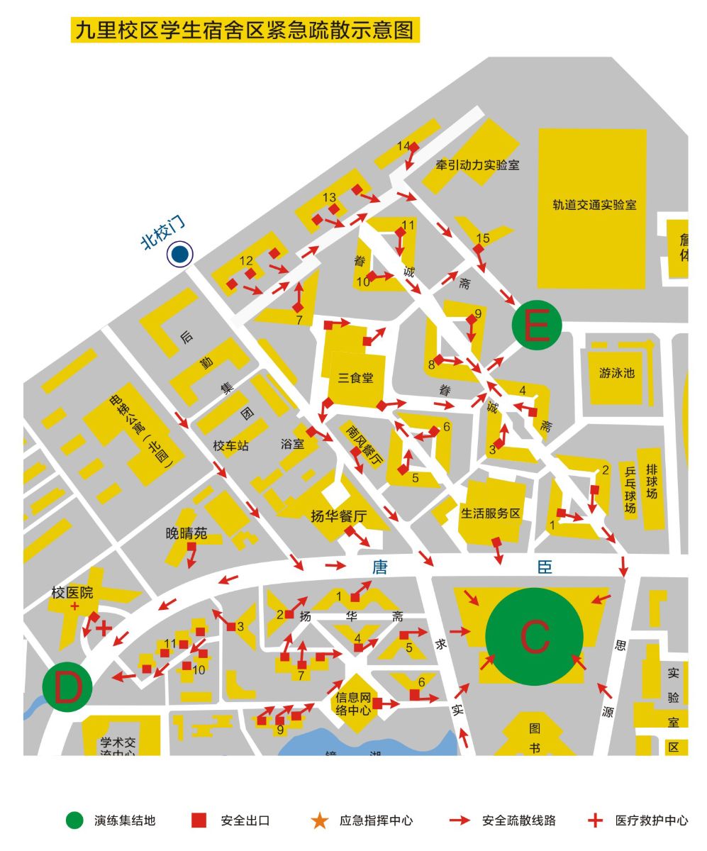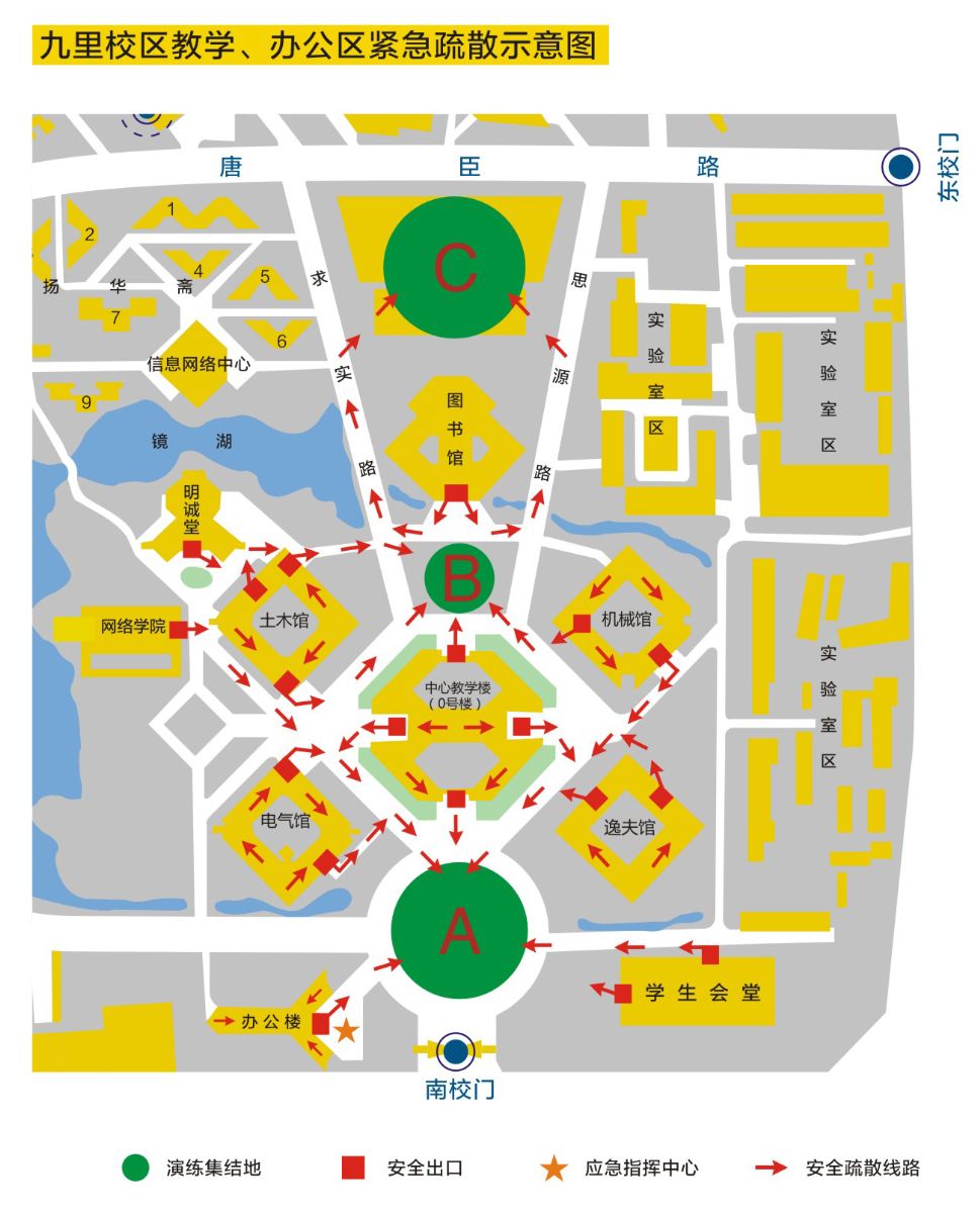 九里、犀浦校区紧急疏散示意图