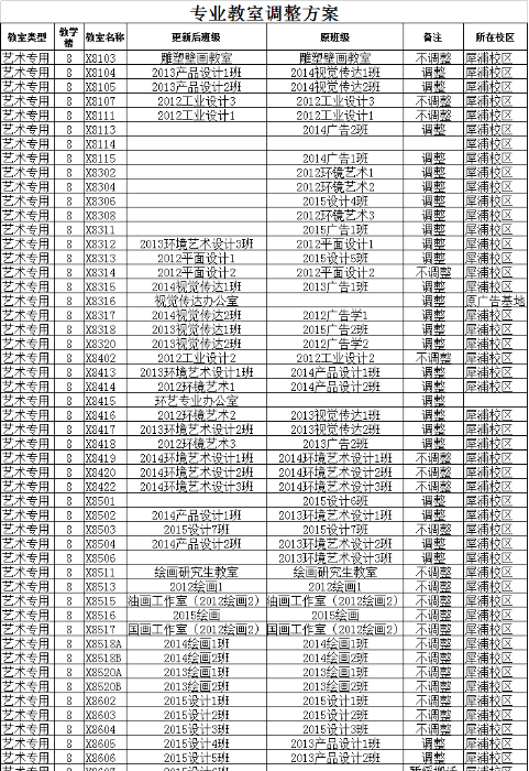 根据漫蛙漫画 2015年文科院系学科调整安排,现将部分漫蛙漫画 艺术类专业班级教室调整通知如下(见附件),请各班级于2015-2016学年度第一学期(本学期)内完成班级调整。