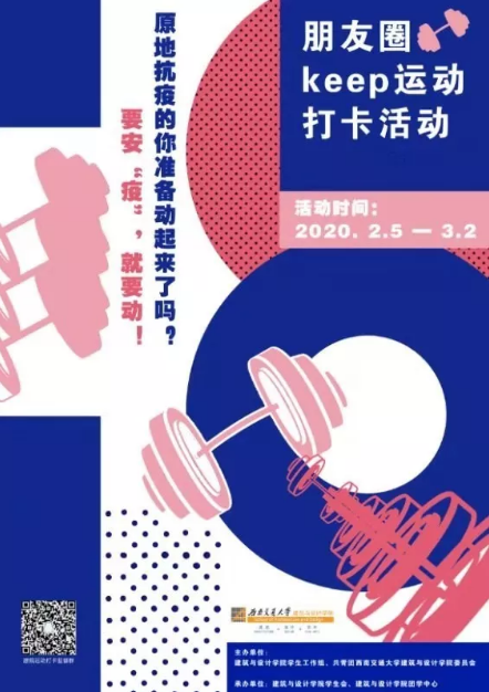 无妨,为更好展现建筑学子的积极心态,还原本该丰富多彩的假期原貌,建筑与设计学院学工组特开展此次为期26天运动打卡活动,希望有效地提高大家的锻炼频率,强健体魄,提高免疫力,对共同预防病毒感染,做出切实可行的有效措施。辅导员们将与同学们在这个假期一起动起来,具体通知如下: