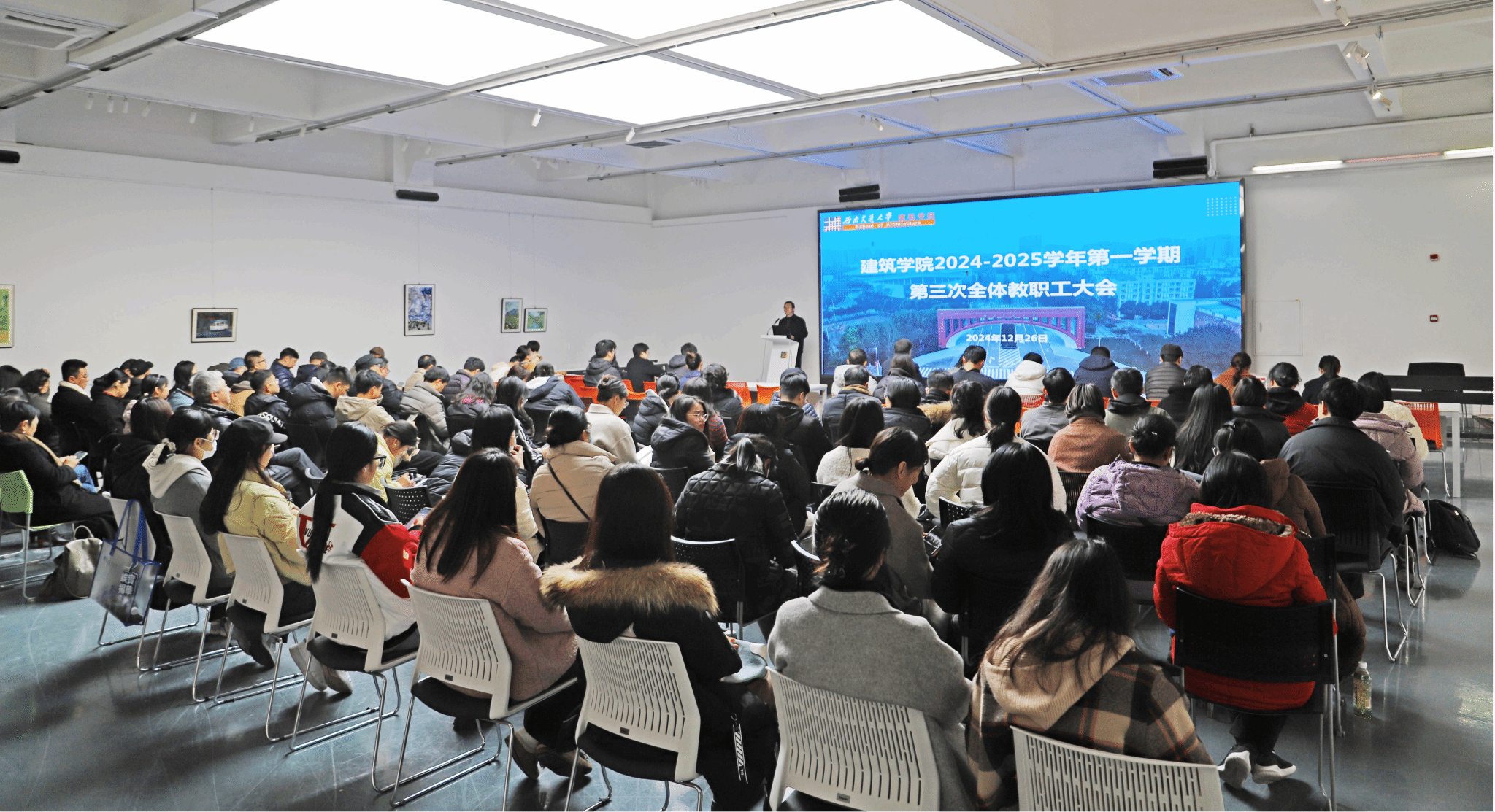 2024-2025学年第一学期第三次全体教职工大会在犀浦校区8号教学楼西南交通大学美术馆顺利召开。本次大会由党委书记胡伟主持,学院全体班子成员及全体教职工参加了会议.