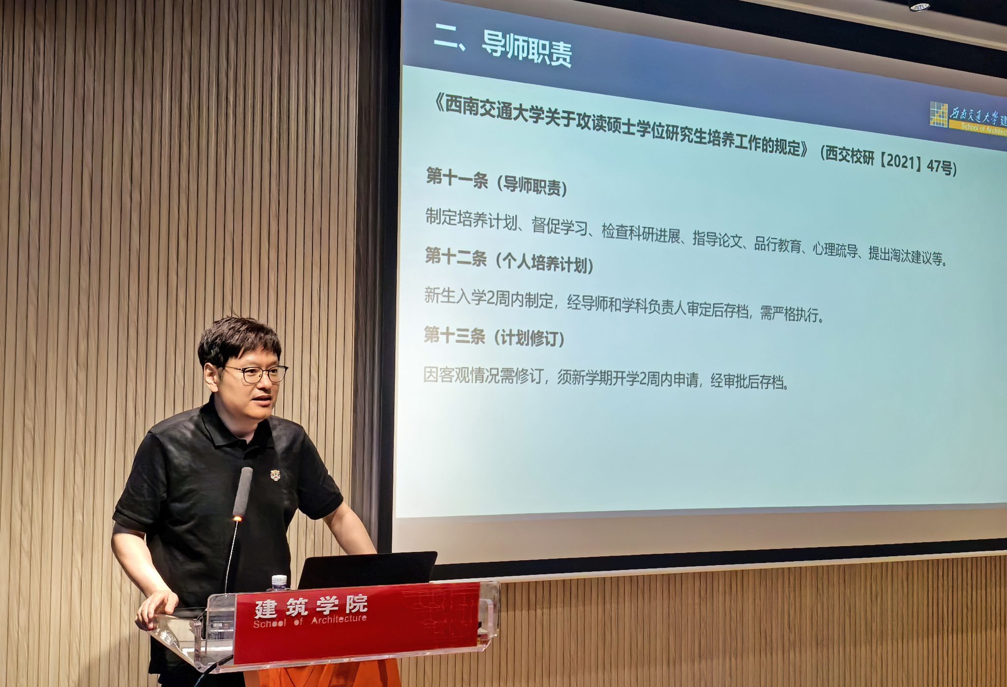 研究生导师系列培训活动在学院A100报告厅顺利举行。本次活动以“建筑与美术专业经验互鉴,共筑卓越导师团队”为主题,学院40余名研究生导师参与。副院长崔叙主持活动并作总结讲话,现场通过专题经验分享与座谈交流,推动跨学科导师团队建设与人才培养质量提升。