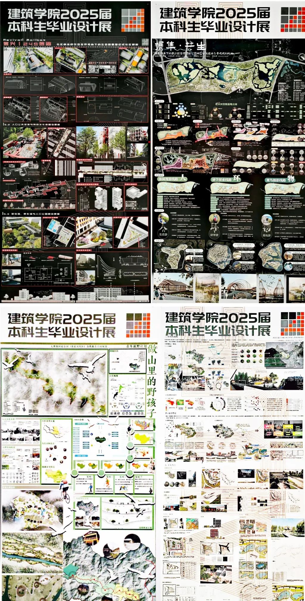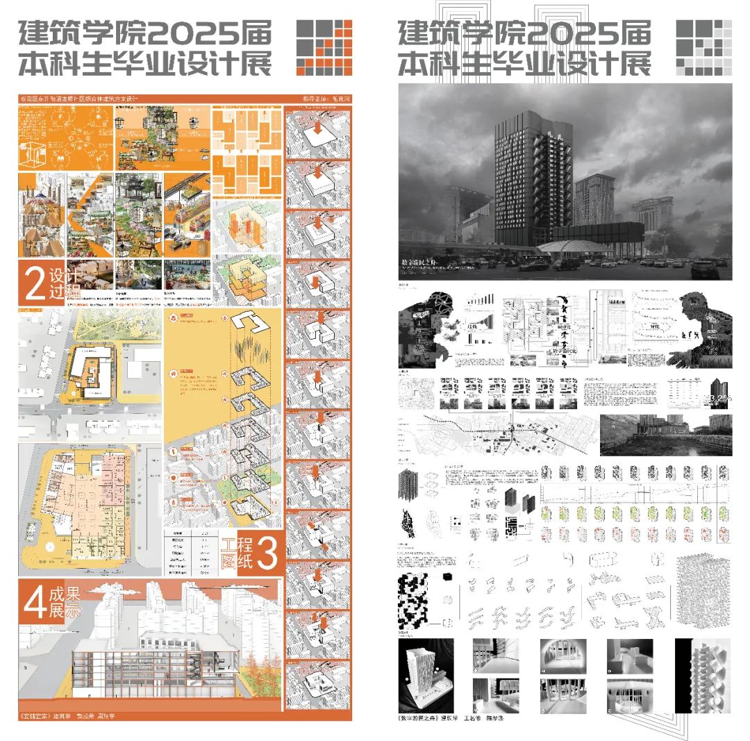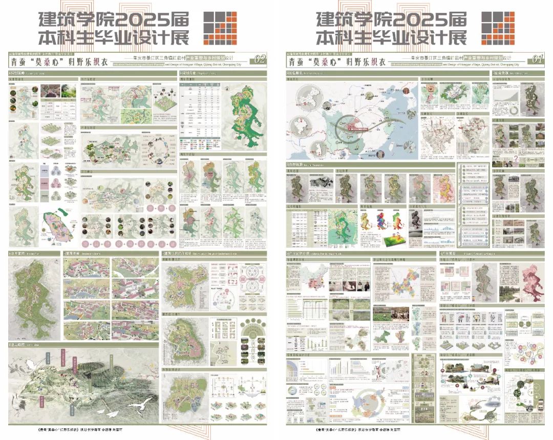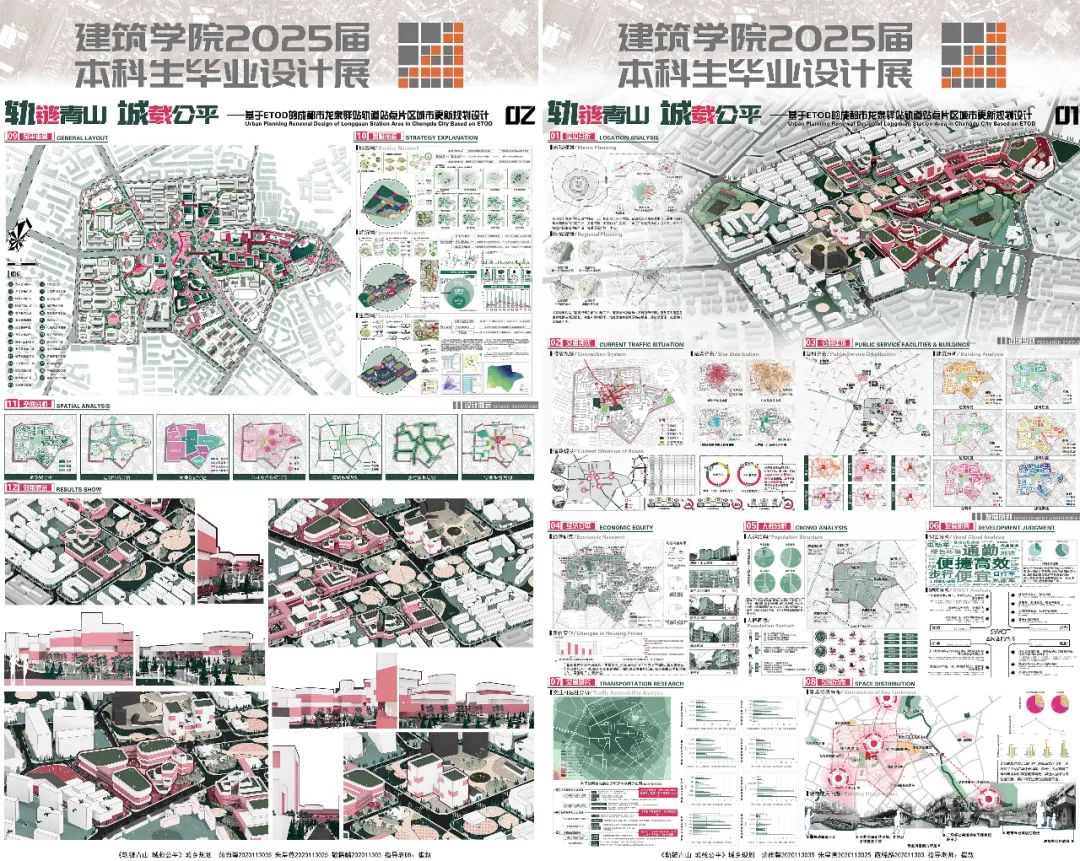 同学们通过模型、图纸与数字化成果,多维度展现设计思考:在适老化社区与历史街区活化领域,既有模块化建筑与共享理念结合的创新思路,也有以西南地域文化为脉络、探索传统营建智慧现代转译的在地性实践;区域协调发展主题下,成渝双城经济圈功能联动策略研究、川西传统村落保护与发展实证分析等作品,彰显建筑类专业服务国家战略的独特价值;生态建设方向呈现兼顾生态修复与场所精神营造的设计实践,如城市棕地再生的景观叙事重构、天府绿道网络的功能优化等创新方案,更有团队运用参数化技术平衡自然形态与人工环境,或基于"海绵城市"理念构建气候适应性景观系统,展现应对环境挑战的前瞻视野。