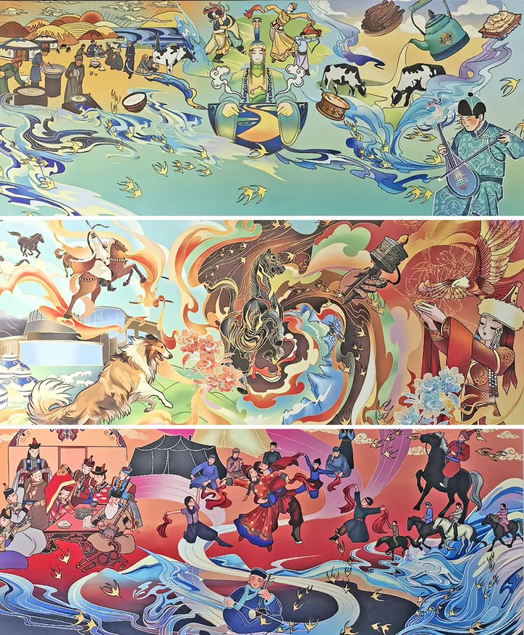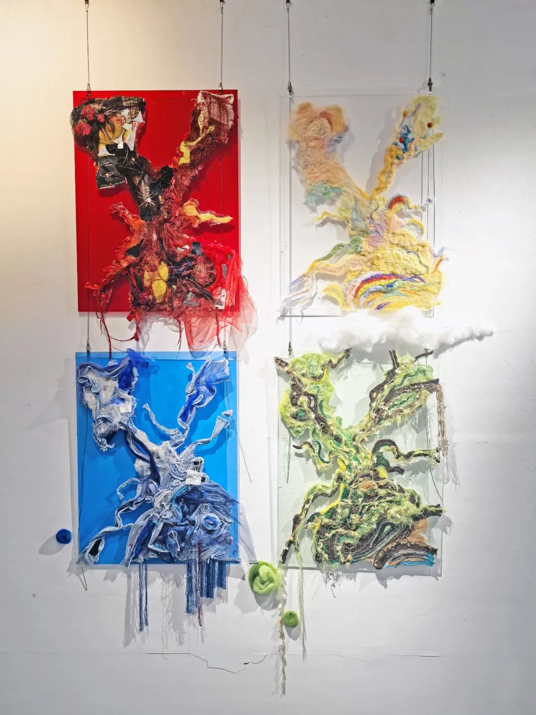 特别值得关注的是绘画专业同学们的作品,以水墨、油画、综合材料等媒介展开创作。这些作品不仅丰富了校园美育资源,更通过公共艺术装置等形式,将美术馆空间转化为开放的美育课堂。
