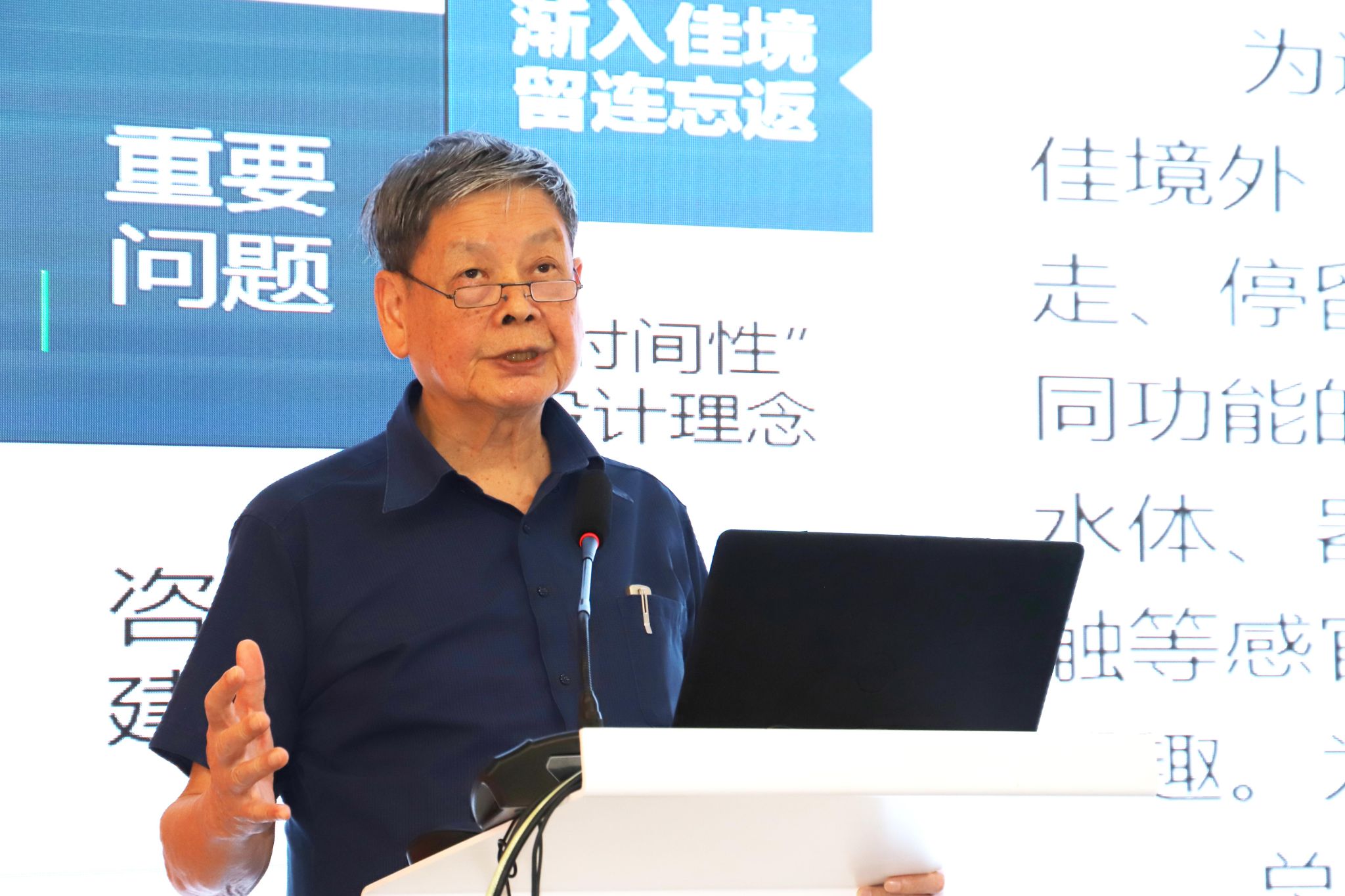 讲座中,吴硕贤院士从中国传统文化中汲取智慧,系统阐释了声景、香景、光景“三景融合”的人居环境营造理念。他强调,城乡规划应遵循“大音希声、大象无形”的哲学思想,注重虚实相生与留白艺术;景观设计应讲求“渐入佳境”,强化时间性与参与性,营造具有文化认同与情感共鸣的人居场景。吴院士结合人民大会堂音质改造、西湖“三潭印月”、拙政园香景营造等典型案例,生动展现了多感官协同在提升环境品质中的重要作用。