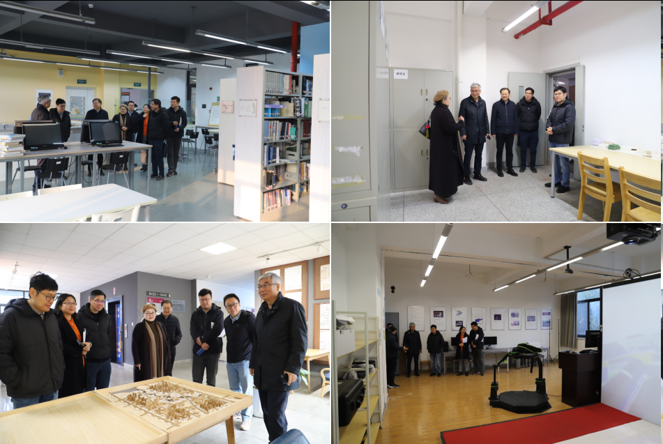 督察期间,专家组实地考察了学院教学科研条件,先后走访图书馆、图档室、美术馆、教师工作室、三至四楼教学空间、系办公区及虚拟仿真实验室等教学设施与实践平台,全面掌握城乡规划专业教学运行现状及育人环境建设情况。