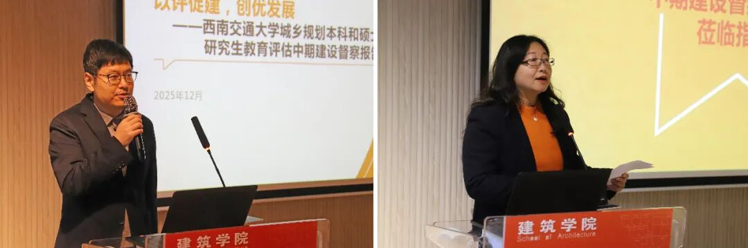 崔叙副院长代表学院作城乡规划专业本硕教育建设成果汇报,系统阐述了专业建设进展、人才培养体系构建、师资队伍建设成效及教学改革核心成果。