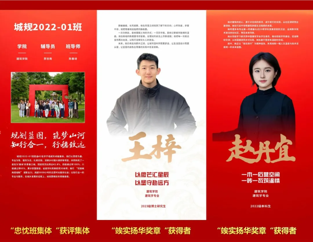 众多先进集体和优秀个人的集中缩影。他们中的佼佼者,城乡规划2022-01班班风正、学风浓,班级建设成效显著;赵丹宜、王梓两位同学深耕学业科研,以扎实的专业能力展现了建院学子的良好风貌。