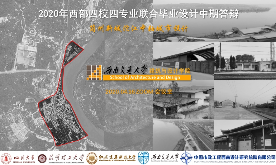 主办的2020年西部四校四专业联合毕业设计(简州新城沱江中轴城市设计)中期答辩顺利举行。此次中期答辩是对参与联合毕业设计的四校同学前期工作成果的阶段性检查,也是加强四校师生相互交流的纽带。本次答辩委员会成员,由来自西安建筑科技大学、昆明理工大学、四川大学、西南交通大学的19名教师与来自中国市政工程西南设计研究院的3名专家组成,答辩采取视频连线的方式进行,参与答辩的是来自四所高校的84名学生。