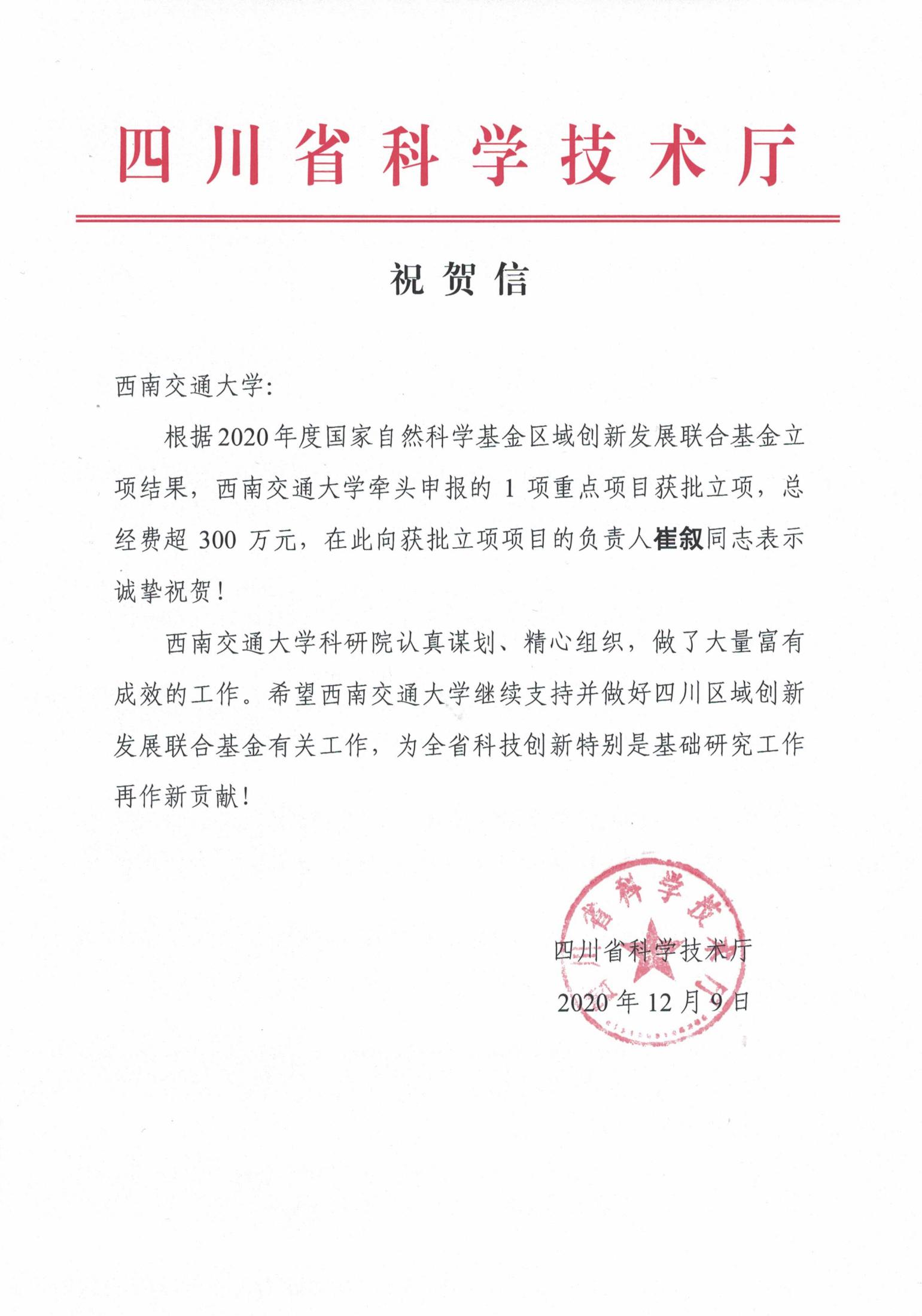 根据国家自然科学基金委员会和四川省科技厅通知,漫蛙漫画 崔叙教授主持的“交通综合体与城市关联效应及效能优化方法研究”获批国家自然科学基金区域创新发展联合基金重点项目,实现了漫蛙漫画 国家自然科学基金重点项目的突破。