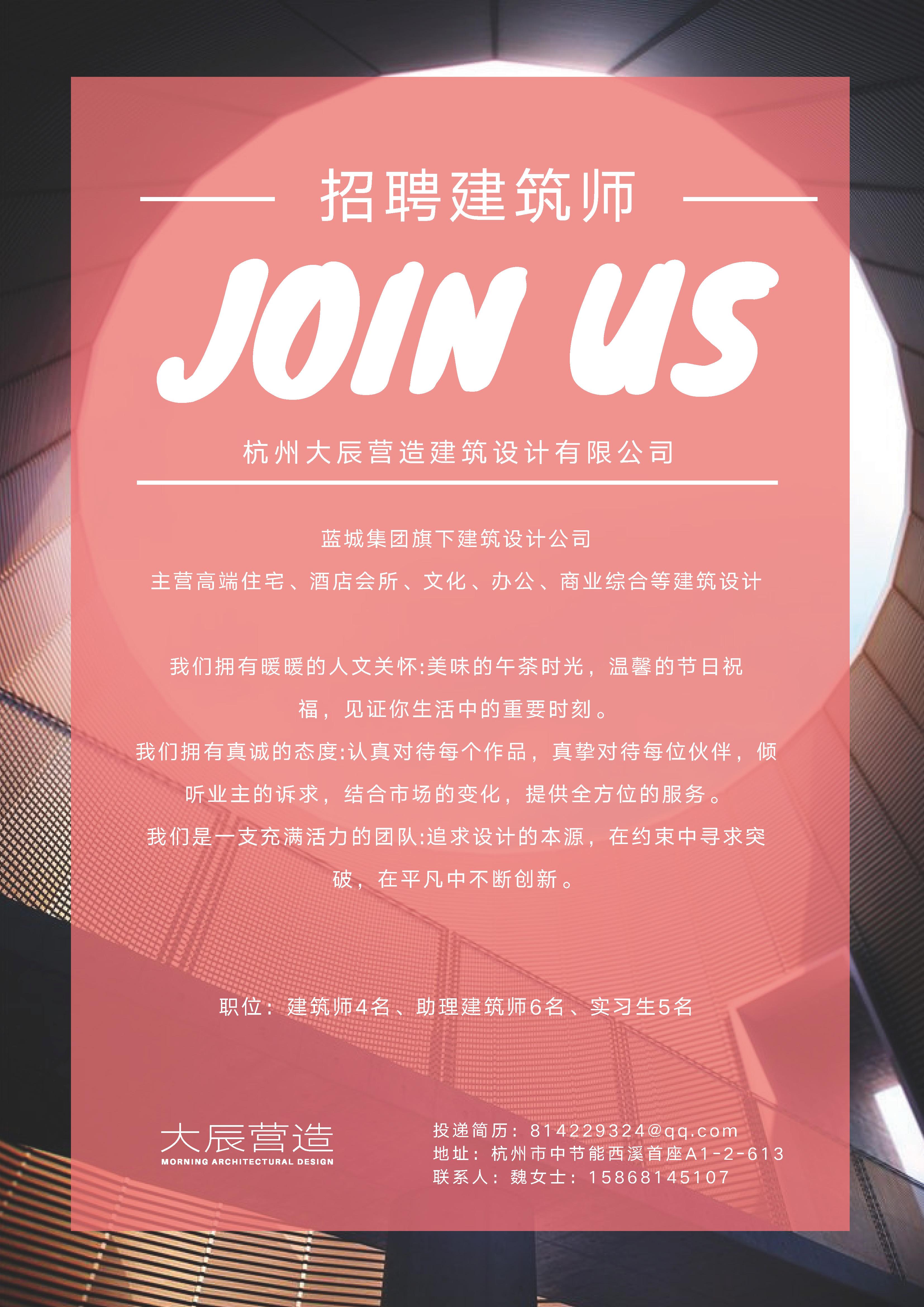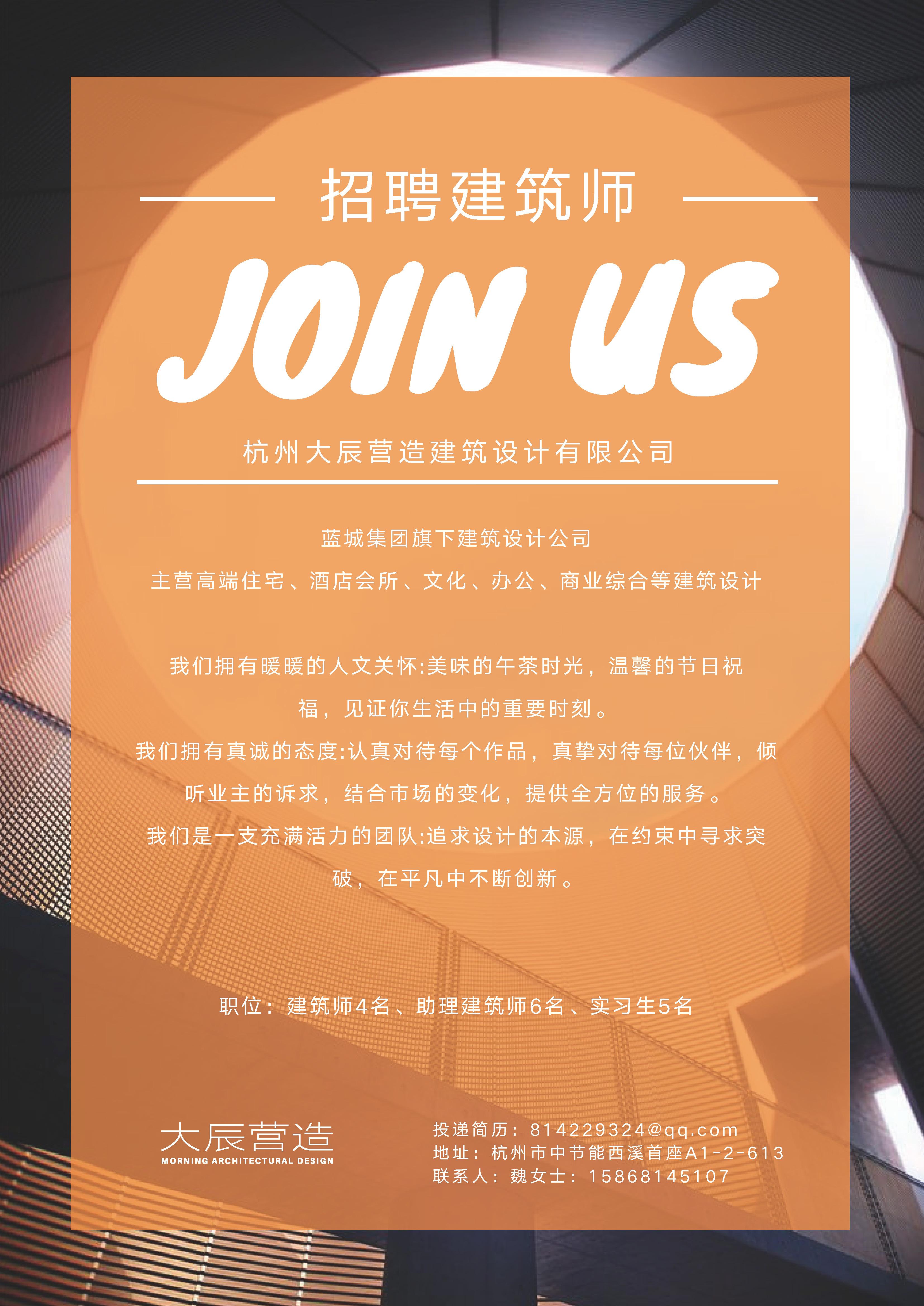 【招聘信息】杭州大辰营造建筑设计有限公司招聘简章