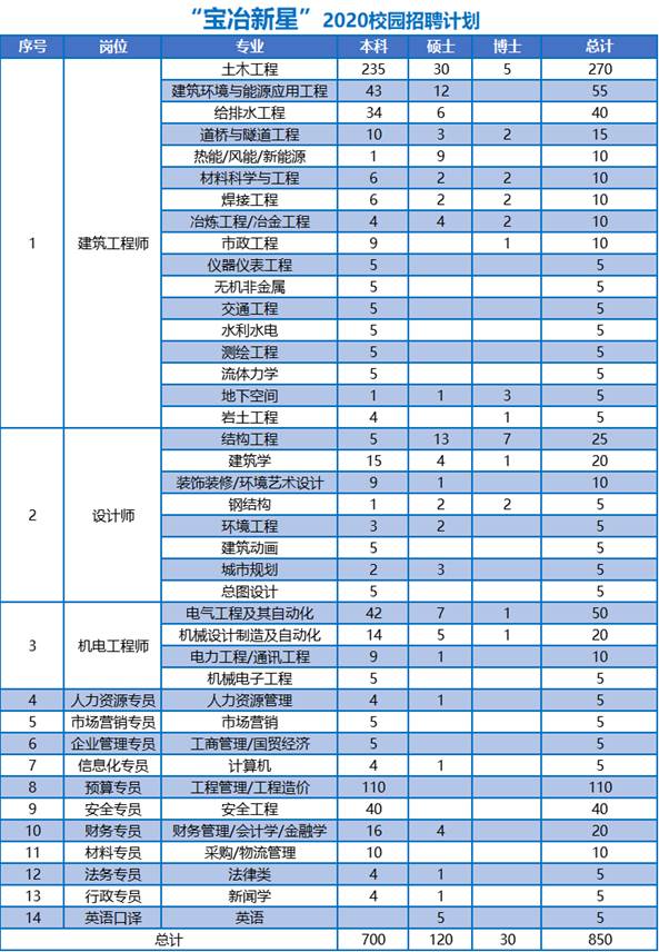 【招聘信息】上海宝冶集团有限公司2020届高校毕业生招聘简章