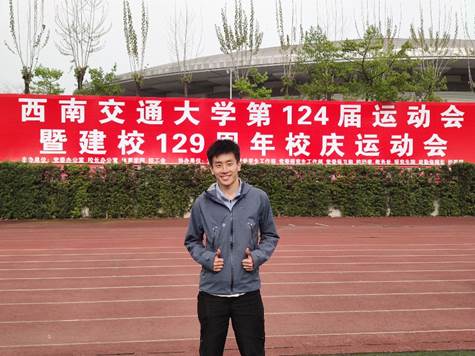 2022级建筑学专业本科生张绍帅在获得了男子3000米冠军的同时,以9分36秒13的成绩,刷新校运会男子3000米高水平组尘封20年的纪录,将原纪录提升了近10秒,也成为了西南交通大学第124届运动会中唯一破纪录学生。这样斐然的成绩迅速让他成为了本次运动会的热点人物。在接受采访时,刚刚完赛的张绍帅同学正在运动场边为自己的队友加油助威。