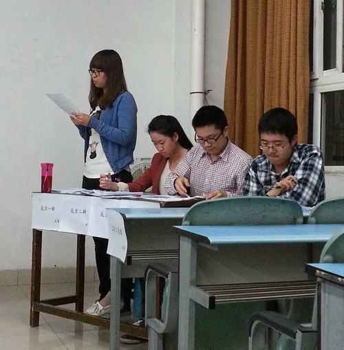 双方主要矛盾集中于分层教学对差等生是否公平,正方抓住针对性展开攻势,而反方则强调了教学资源的有限而导致的不公平。整场比赛,虽然双方辩手都有些紧张,但却不影响比赛的激烈程度,比赛场面依然火药味十足,犀利的问题与精妙的回答多次将比赛推向高潮。