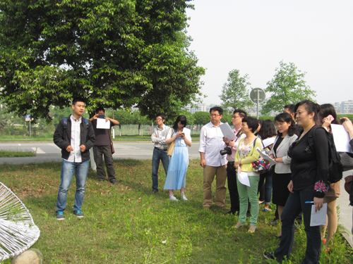评委先后审查了每一个作品,参赛同学向评委老师详细介绍了自己的参赛方案,从构思、材料、结构等方面充分反映自己组作品的特点。评委根据作品的构思、施工过程、对材料特性的理解与运用、造价以及最终作品的美观以及与环境的关系等方面提出问题,并作为评分的重要标准。
