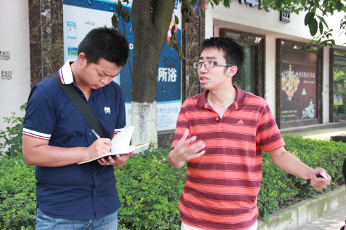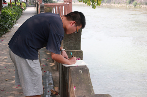 出发前,实践队指导老师方翰强调了“三下乡”社会实践活动重要性和意义,并希望同学们在本次实践中结合自己的建筑学、城乡规划、风景园林学科等特色,发挥自己的专业优势,对重建城市中河流以及滨河路段所面临的问题进行调研,并提出建设性改造方案。经过约两小时的路程,实践队到达了绵竹市滨河路段,并开始延滨河路前行观察,对绵竹市城市河流以及滨河路段的周边基本情况做大概了解。在对调研的对象有了基本的认识后,学院团委书记付飞从专业角度讲解了本次调研对灾后城市景观建设的重要意义,并对本次社会实践提出了具体要求。在明确分工后,各组按照分配任务开始了本次调研。