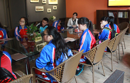 2014年10月19日,中建西南院团委副书记严一云、总经理助理刘翔与西南院资助的10名名山一中的学生来到西南交大 漫蛙漫画 参观学习、。