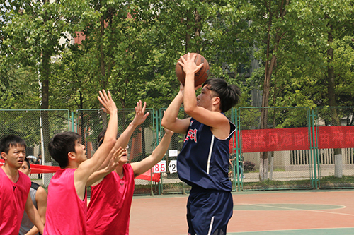 在经过多场淘汰赛的激烈角逐后,大三建筑队和大四建筑队脱颖而出,争夺最终桂冠。季军之争在2014级和2013级之间展开,最终2013级获得季军。中午12:30,队员们顶着烈日,个个激情满怀,积极做好赛前准备。比赛伊始,队员迅速投入比赛,个个雄姿英发,在场上你争我夺,投球动作潇洒,每个动作争锋相对,帅气利索。双方争夺异常激烈。比赛进行地如火如荼,双方队员都情绪高涨,观众亦激情四射,球场一旁的拉拉队也气势磅礴,在场边拉起了加油牌、彩球等为场上的队员呐喊助威,现场的气氛十分活跃。最终,大四建筑队通过团队合作,将比分拉至44比38,提前锁定胜局。