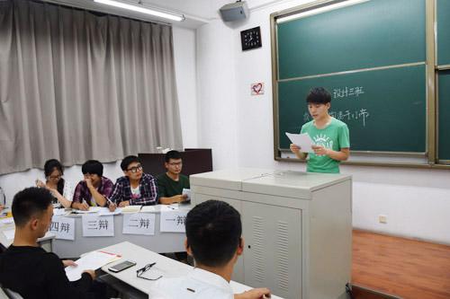 第二场比赛的辩题是“成大事者应不应该拘泥于小节”, 正方辩手是15级设计三班代表队,反方辩手是15级设计六班代表队。双方以“小节与细节的概念”、“小节与大节的关系”作为切入点,引经据典,阐述自己的观点。经历过一番唇枪舌战,正方代表队获得了本场的胜利。