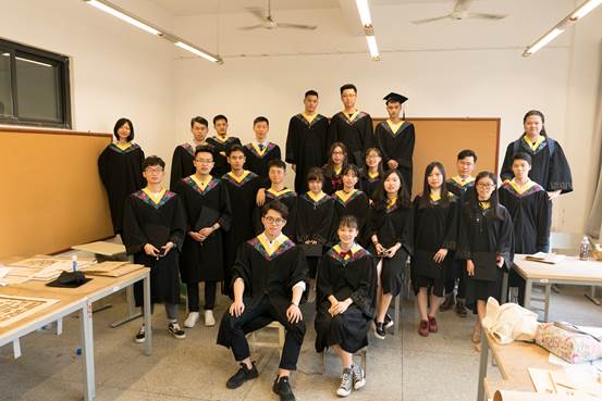 穿着学士服,西南交通大学2013级建筑三班的同学们相聚教室举行了最后一次班会。