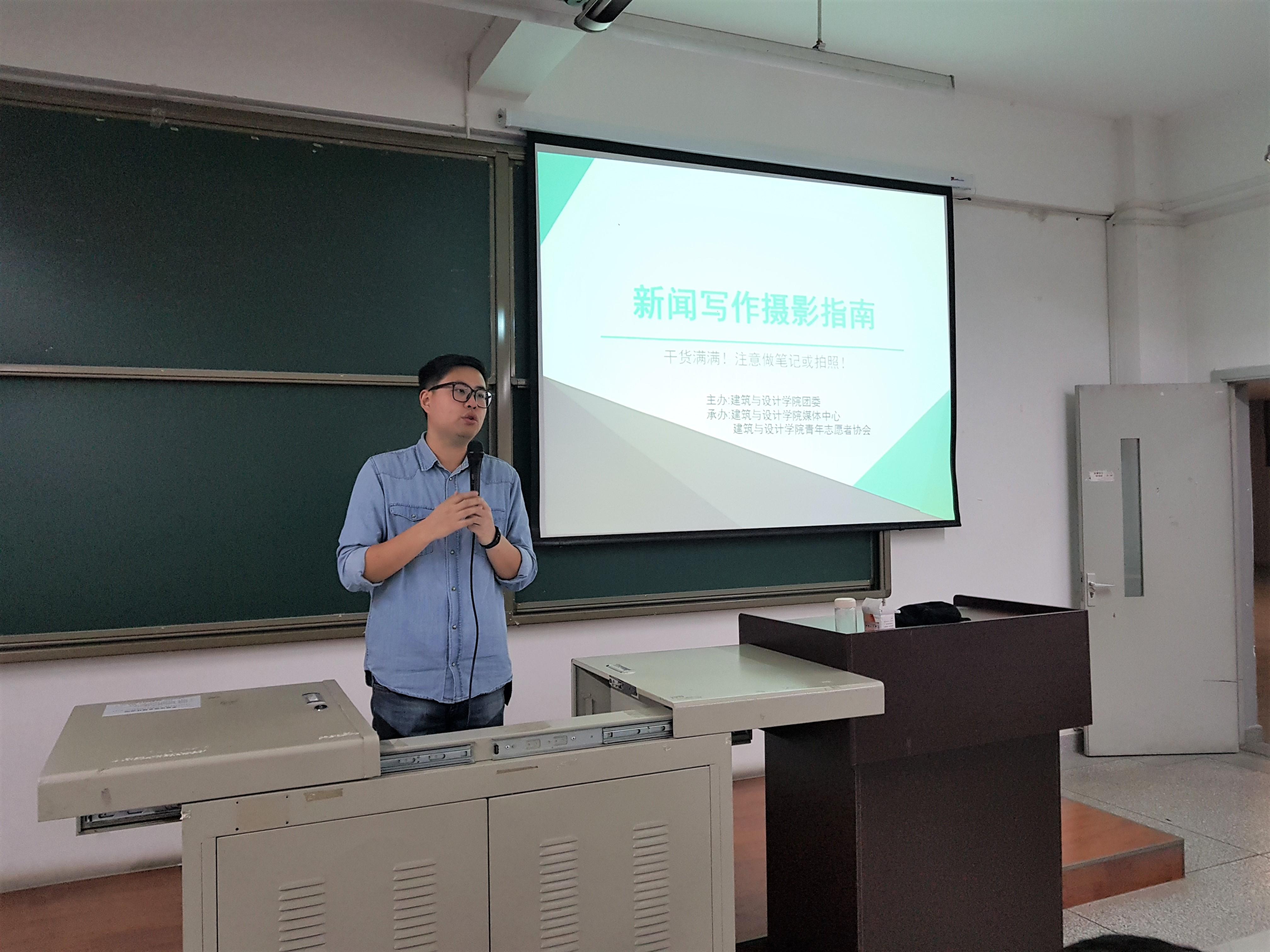 媒体中心主任徐嘉瑞同学与青年志愿者协会副会长兼媒体中心副主席赵润奇同学向大家分享了他们的新闻写作与摄影经验,院团委副书记刘野及百名同学参与了此次培训学习。
