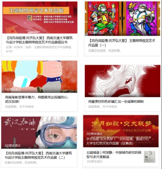 We answered the call of times with our works that praise patriotism and zeitgeist. On February 5, through new media, the SA&D called on all faculty and students to support and encourage people working on the front lines of covid-19 control. Later, with hundreds of paintings, posts, photos and designs from participants, we hosted many on-line exhibitions under the theme “United in fighting against the pandemic and pursuing greater good for all”. These works recorded the fight with Covid-19 and commended heroic action. Though different in forms and styles, they shard the common of commitment to the party and country. Our on-line exhibitions were later covered by Xinhuanet on March. 7, 2020.