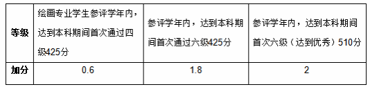 参评学年内全国大学外语六级笔试成绩达到本科期间首次通过(或达到优秀)大学生外语水平考试四六级同学的奖励,加分标准如下表: